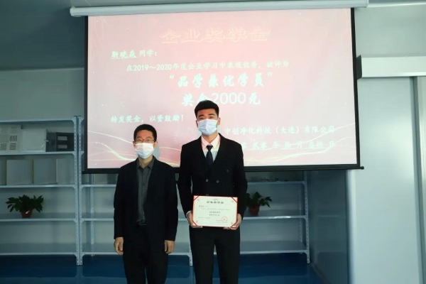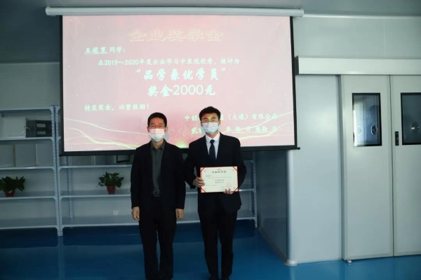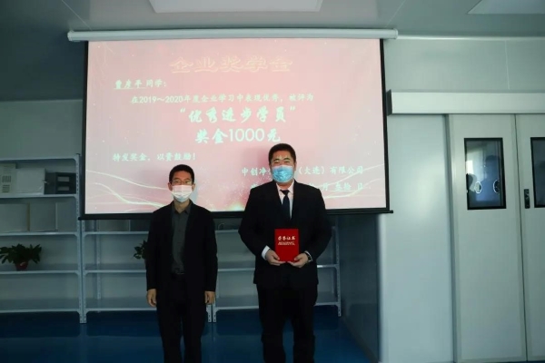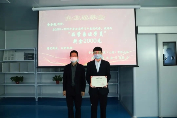 为了激励同学们好好学习,以及对2019级学生上一学年取得成绩的肯定,企业设立“中创科技奖学金”,企业总经理为品学兼优学员和优秀进步学员颁发了荣誉证书和奖金。
