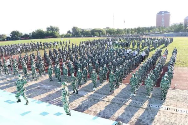 同学们伴着晨曦的阳光,唤醒了沉睡的身体,青春的军装在阳光下格外耀眼。迎着骄阳,操场上一列列整齐的队伍正如火如茶的进行着训练。同学们在教官的指导下进行列队队形、四面转向等基本的军事技能训。