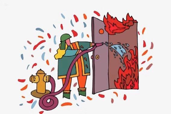(7)室外着火,门已发烫时,千万不要开门,以防大火窜入室内。要用浸湿的被褥、衣物等堵塞门窗,并泼水降温。
