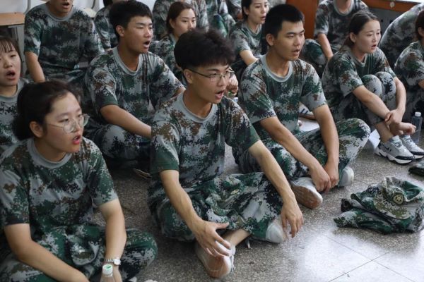 我们先乖乖地跟着教官唱了一首歌