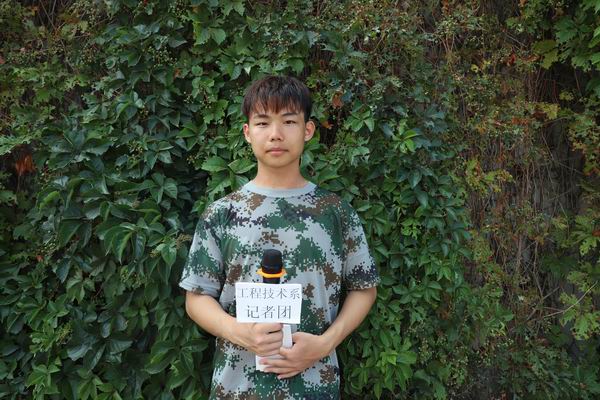 记者:工匠精神 精益求精,大家好,我是军训8班的张泽锴。来自大连市第二中学,是本次工程技术系校园军训采访团的成员之一,我们的大学生活已经随着军训整齐伐一的步伐悄然开始了。接下来,就请大家和我一起,来看看我们军训8班的同学们。