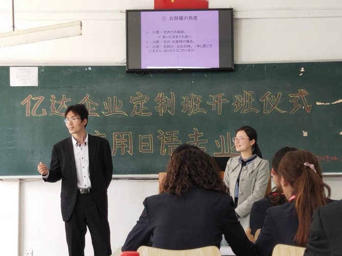 亿达信息技术有限公司与我院应用日语专业的深度合作持续开展了四年的时间。每年的亿达企业定制班都为学生们顺利走上工作岗位奠定了良好的心理基础和技能基础。今年的定制班活动不仅帮助应用日语专业的学生明确了职业发展方向,充分调动了学生们顶岗实习积极性,更重要的是培养了学生良好的商务礼仪习惯,为进入企业实习奠定了扎实基础。
