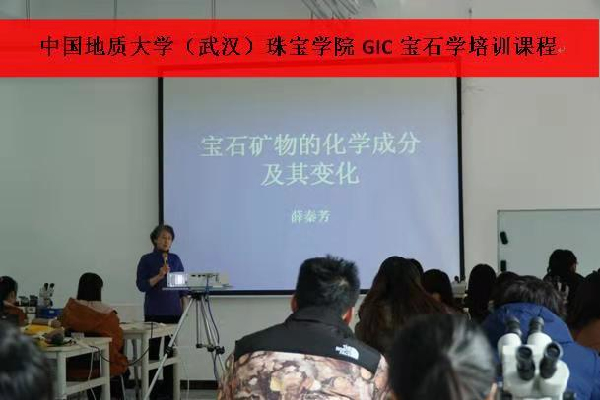 2018年12月4日,于我校新图书馆举办中国地质大学(武汉)珠宝学院GIC宝石学课程开班仪式。本次课程邀请到中国地质大学(武汉)珠宝学院薛秦芳教授、尹作为教授、陈美华教授、郑亚龙讲师、王谦祥讲师等大咖来我院为珠宝专业学生授课。