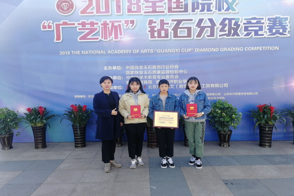 2018年9月27日,在珠宝专业孙艳、关育涛老师的带领下,我院学生于丁钰、周悦、付小离三名同学参加了在青岛经济职业学校举行的“2018 年广艺杯全国院校钻石分级竞赛”。
