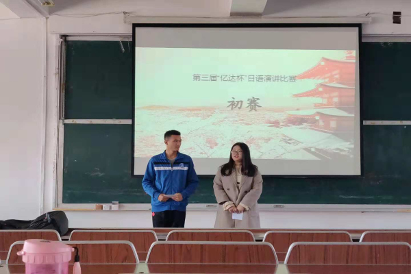 2018年10月30日中午12点,第三届“亿达杯”日语演讲比赛初赛在我院一号教学楼西多媒体举行。本次大赛得到了同学们极大的重视与关注,共有来自七个班级的18名同学参加了本次初赛。每位选手就自己感兴趣的题目进行了演讲。同学们倾情演讲的同时各位评委老师认真的倾听并为他们打分。