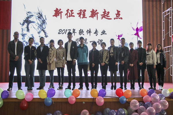 2017年10月19日大连枫叶职业技术学院综合馆,一场精彩的“软件技术专业第一课”开始了。出席本次活动的嘉宾有大连优尼特科技有限公司栾总、人事部胡部长、信永科技(大连)有限公司张总、三个火枪手网络技术(大连)有限公司技术总监王部长、学生家长代表、教务处副处长裴莉琳、创业就业办主任张晓洁、网络中心主任薛飞、工程技术系教学管理副主任高源、学生管理副主任刘姜青、IT数字艺术专业团队专业长高群以及IT技术团队教师等。