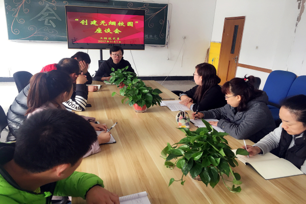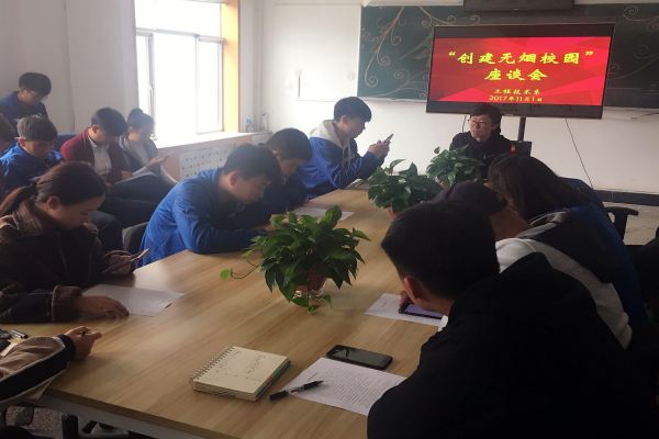 此次活动,教师也参与其中,不但要率先垂范,还要认真做好具体组织实施工作,加强学校治理,完善禁烟措施。刘姜青主任主持辅导员和系内班级干部开展“创建无烟校园,从你我做起”的座谈会,引起系内学生的重视,并告诫他们放下手中烟,为自己好也是为他人好,让我们一起共享无烟校园。