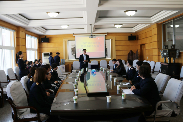 人间四月芳菲尽,山寺桃花始盛开,2016年4月26日在这春意盎然的日子里,大连市铁路客运车站领导来到我院学习交流,参加此次交流会的有团委学工处处长高成林、党务宣传部主任聂俭丽、系学生管理主任刘姜青、系团委书记隋新、高铁乘务专业长闫博、大连市铁路客运站团委李书记、工会张主任及各位青年骨干 。