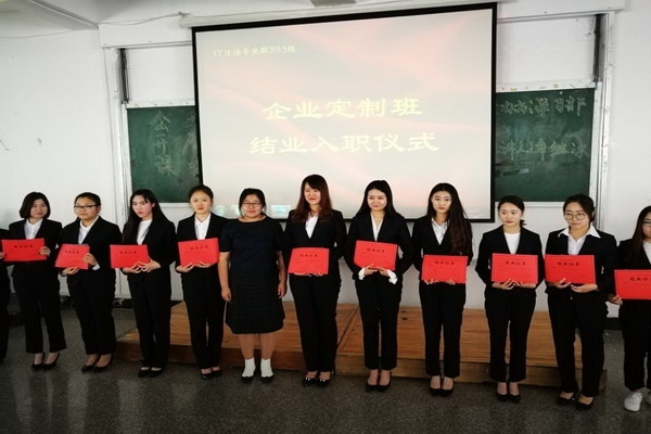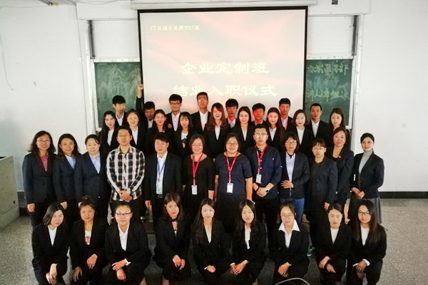 2017年4月27日,IT日语专业团队2015级学生“校企定制班结业入职”仪式在西多媒体举行。莅临本次活动的嘉宾有亿达培训部经理邹敏娜,业务部部长李松梅、欧利德部长全海勇、金光哲老师。大连枫叶职业技术学院教务处处长张冬冬、船舶与计算机系主任王晓琳、IT日语专业团队各教师。