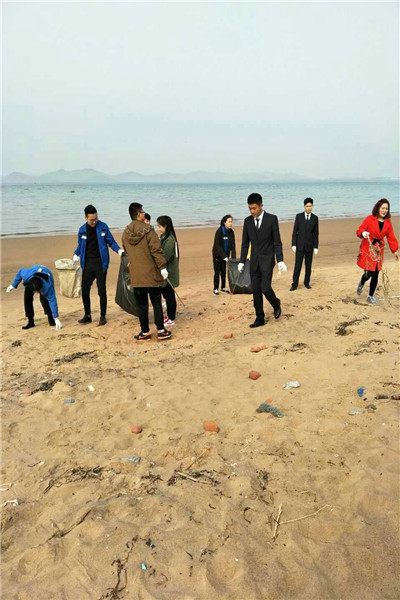 一同前往海边进行卫生清扫活动