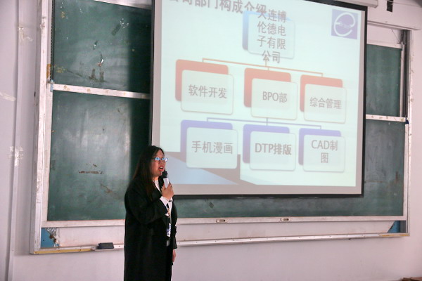 在开幕式环节,船舶与计算机系主任王晓琳致欢迎词后我系应用日语和软件技术专业的学生进行了专业展示,获得了企业的一致好评。近十家企业的负责人向学生进行了企业宣讲,使学生更加全面、深入的了解企业的情况,同时也为学生奉献了一堂生动的职业生涯规划课。