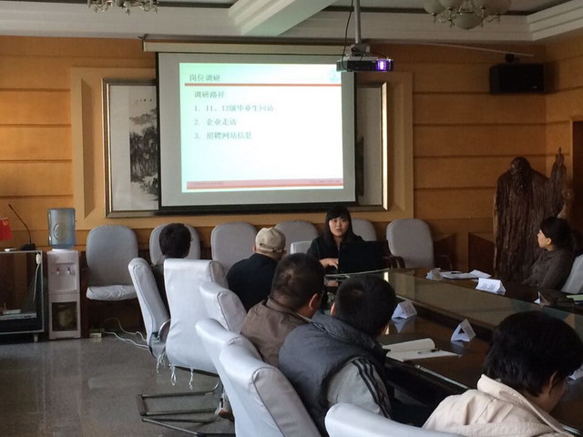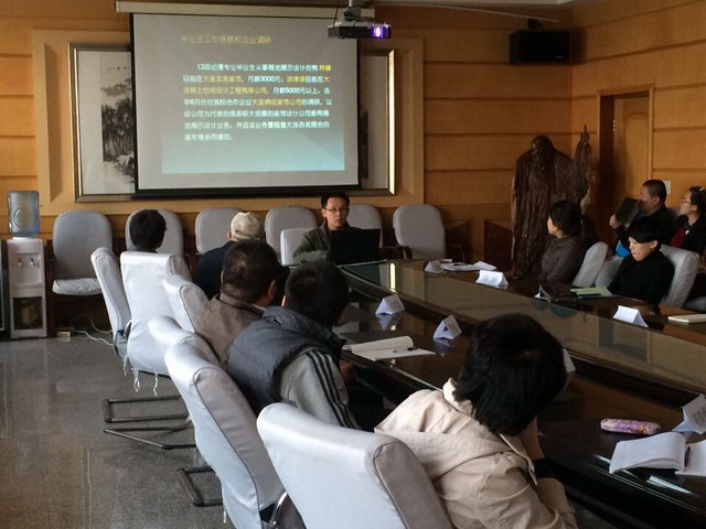 本次会议的主持人高源老师就动漫专业教学改革的总体思路进行了说明,包括三个方面,一是工作室化教学实施背景,二是工作室化教学模式,三是预期目标。共分四个对应岗位的工作室:展览展示工作室(张宇)、室内设计工作室(董雪莲)、平面设计工作室(高源\李敬合)、影视后期工作室(陈凯)。之后各位项目负责人就工作室化教学进行详细论述。