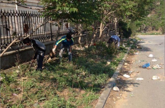 构建绿色和谐校园,我们在行动——记船舶与计算机系学生清扫校园周边卫生活动