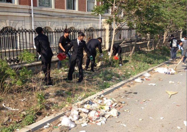 为加强大学生的文明修养与思想道德建设,构建文明和谐校园,船舶与计算机系13船舶1班全体同学在系学生管理老师的带领下,于2014年5月12日下午3时,在学院外进行“构建绿色和谐校园,我们在行动”周边环境大清扫活动。