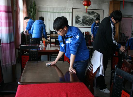 进入敬老院后,同学们表现的很积极,发扬不怕脏、不怕累、勤劳实干的精神,着手敬老院的清洁工作。大家找来拖把、扫帚忙碌起来,清洁工作细化到每一个角落,同学们用汗水换来了敬老院的整洁,每个人心里的成就感是不言而喻的。随后,大家采用“寓情于生活,听重于说”的方法,与敬老院的老人们促膝长谈,真诚的询问他们的生活、家庭情况、是否还习惯敬老院的生活以及他们的身体状况。