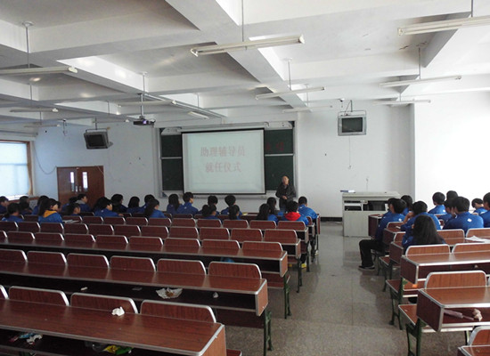 为了提升学院学生工作管理质量,加强对校风校纪的建设,学院引进了助理辅导员一职.2013年10月15日上午7:50,在学院东多媒体教室,举行了船舶与计算机系、珠宝与国际教育学院助理辅导员就任仪式。出席本次仪式的领导有学生处处长吕运福,船舶与计算机系干事隋新以及12级助理辅导员,13级班长、团支书。