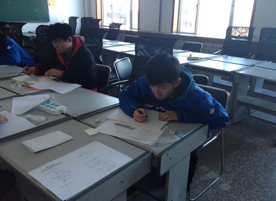 本次比赛分为预赛、决赛两个环节。预赛中,同学们对老师指定的题目进行制图。同学们抓紧一切可利用的时间进行绘图, 认真细致的测量,精确到每一毫米,不敢有丝毫疏忽。决赛由预赛成绩排在前六名的同学参加,赛前20分钟选手们就进入了考场,检查圆规、直尺等作图工具,为竞赛做最后的准备。整场竞赛在紧张有序的测量、绘制中进行,充分的体现了选手们扎实的基本功。