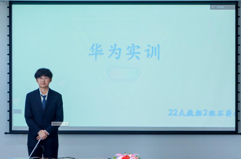 本次发表会的核心环节,史家兴老师为同学们颁发荣誉证书并合影。本次华为集训,由企业教师进行传道授业,为大家提供了与众不同的学习方法和实操技巧,引导大家从传统的被动授学转变为主动求学,增强了领悟、创新和推断的能力。同学们以培养岗位技能为目标,努力完成本次集训内容。