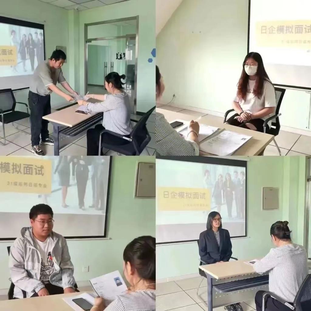 为增进同学们对日企面试的系统全面了解,培养学生在面试中的应试能力,5月17日上午,信息工程系应用日语专业在2号教学楼内成功举办了一场别开生面的日本企业模拟招聘面试活动。本次活动中由日语老师关倩担任面试官,指导21级日语1班的全体同学参与了本次模拟面试。