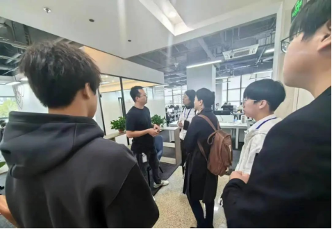 刘经理带我们到公司内部参观。公司分为多个项目组,每个项目组具有不同的保密级别。通过企业内部参观,师生了解了公司的运行情况和实际工作环境。