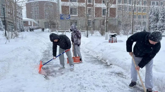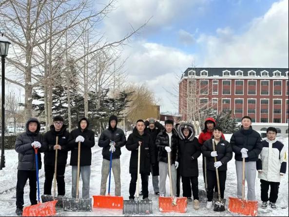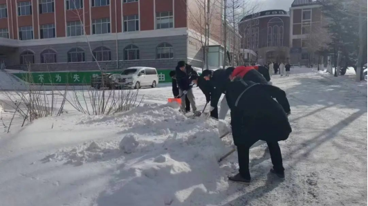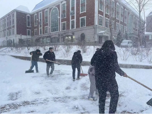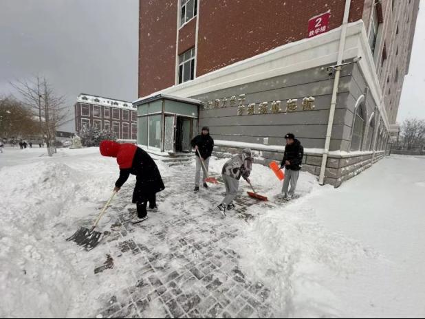 组织师生开展铲雪除冰行动
