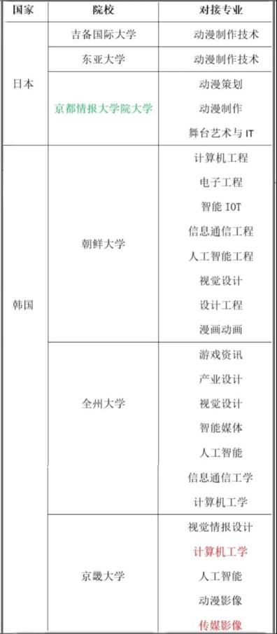1.韩国院校专业标注红色为可直接编入大四专业。