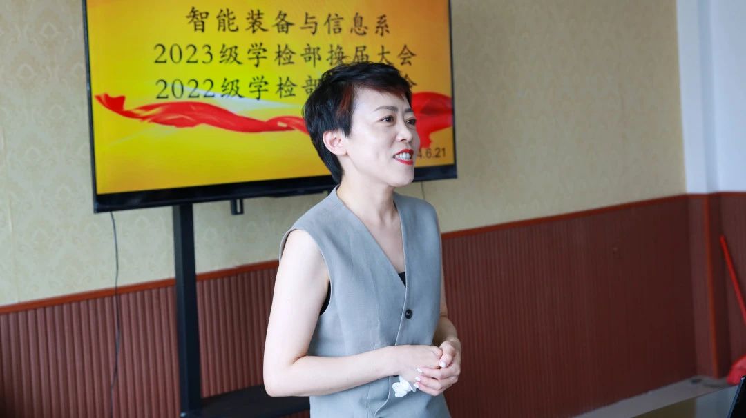 大会的最后智能装备与信息系党支部书记高源对学生干部们提出了更高的要求,展望未来,新一届学检部成员要肩负起更重要的责任和使命。随着时代的发展和社会的进步,学生组织的工作内容和形式也需要不断更新和完善,希望新一届学检部成员能够不断创新工作思路和工作方法,积极探索适合学生工作的新途径、新方式,推动学生组织的改革和发展。高源书记希望所有学生组织成员都能够珍惜机会,认真履行职责,不断提高自身素质和能力,为系部的发展和同学们的成长做出更大的贡献!