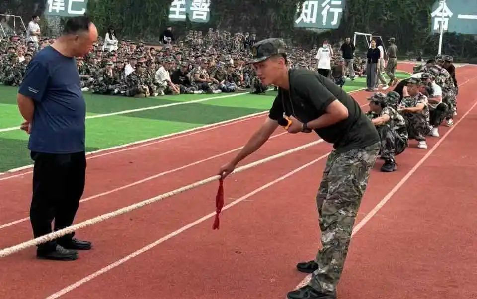你瞧,站在队伍最前方的同学,如同勇猛的将军,带领着身后的“战士” 们冲锋陷阵。他们涨红了脸,额头上青筋暴起,汗水顺着脸颊滑落,却丝毫没有松懈的迹象。而啦啦队的同学们也不甘示弱,他们扯着嗓子为自己的班级加油助威,声音响彻整个军训场。“加油!加油!” 的呼喊声此起彼伏,如同一阵阵激昂的战鼓,激励着场上的队员们奋勇向前。