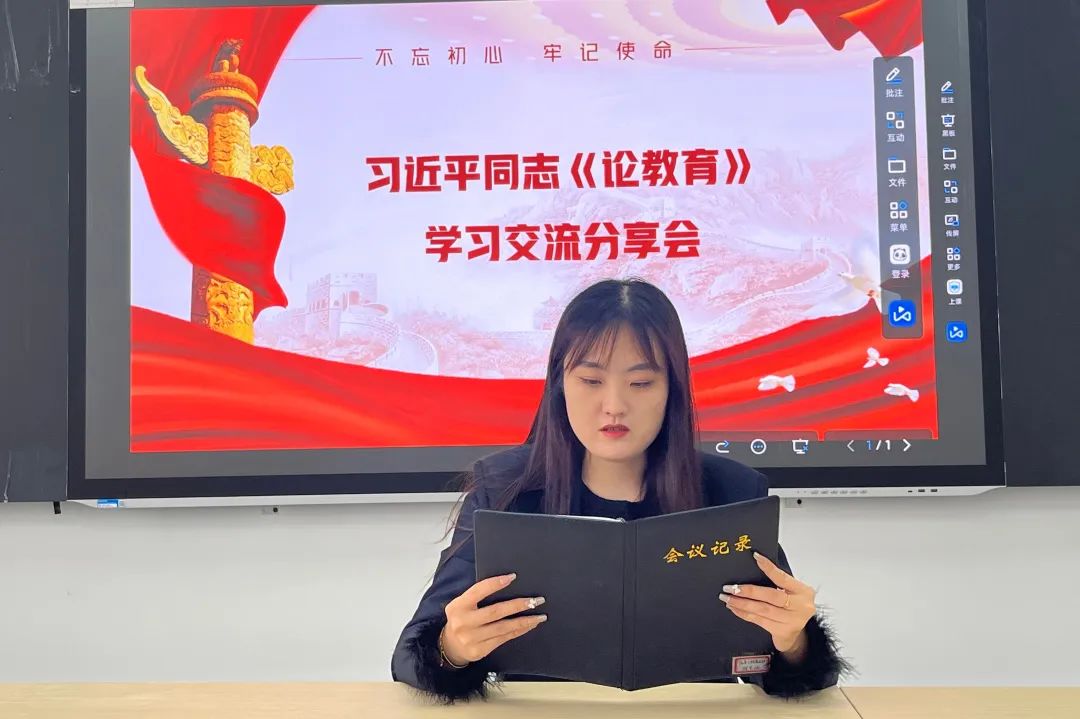 会议上,高英老师根据《大力弘扬教育家精神,为党育人为国育才》分享了自己的学习心得:深刻认识到作为新时代的教育工作者,要学习立德树人、因材施教的教育理念,将培养德智体美劳全面发展的社会主义建设者和接班人作为根本任务。随着时代的发展,教育面临的挑战日益复杂多变,这就要求我们不仅要具备扎实的专业知识,更要勇于创新,不断探索适应新时代要求的教育方法和手段。我们要积极运用现代信息技术,推动教育教学改革,提高教育质量,为党育人、为国育才贡献自己的力量。