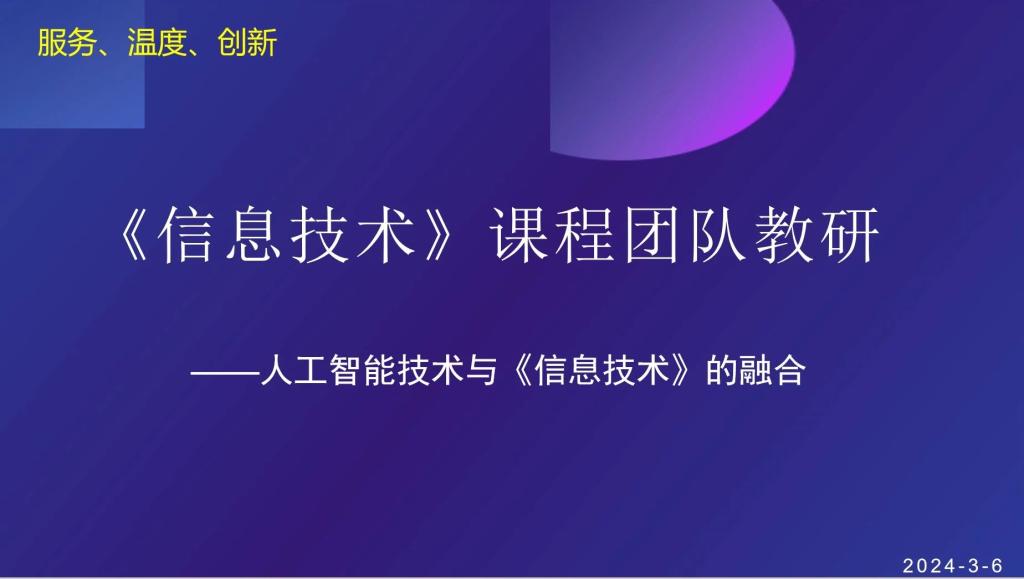 在数字化浪潮中,信息技术课程与人工智能的结合已成为教育领域的新趋势。今天下午我院信息技术课程团队的教师们齐聚一堂,就“信息技术课程与人工智能的融合”这一主题展开深入探讨。