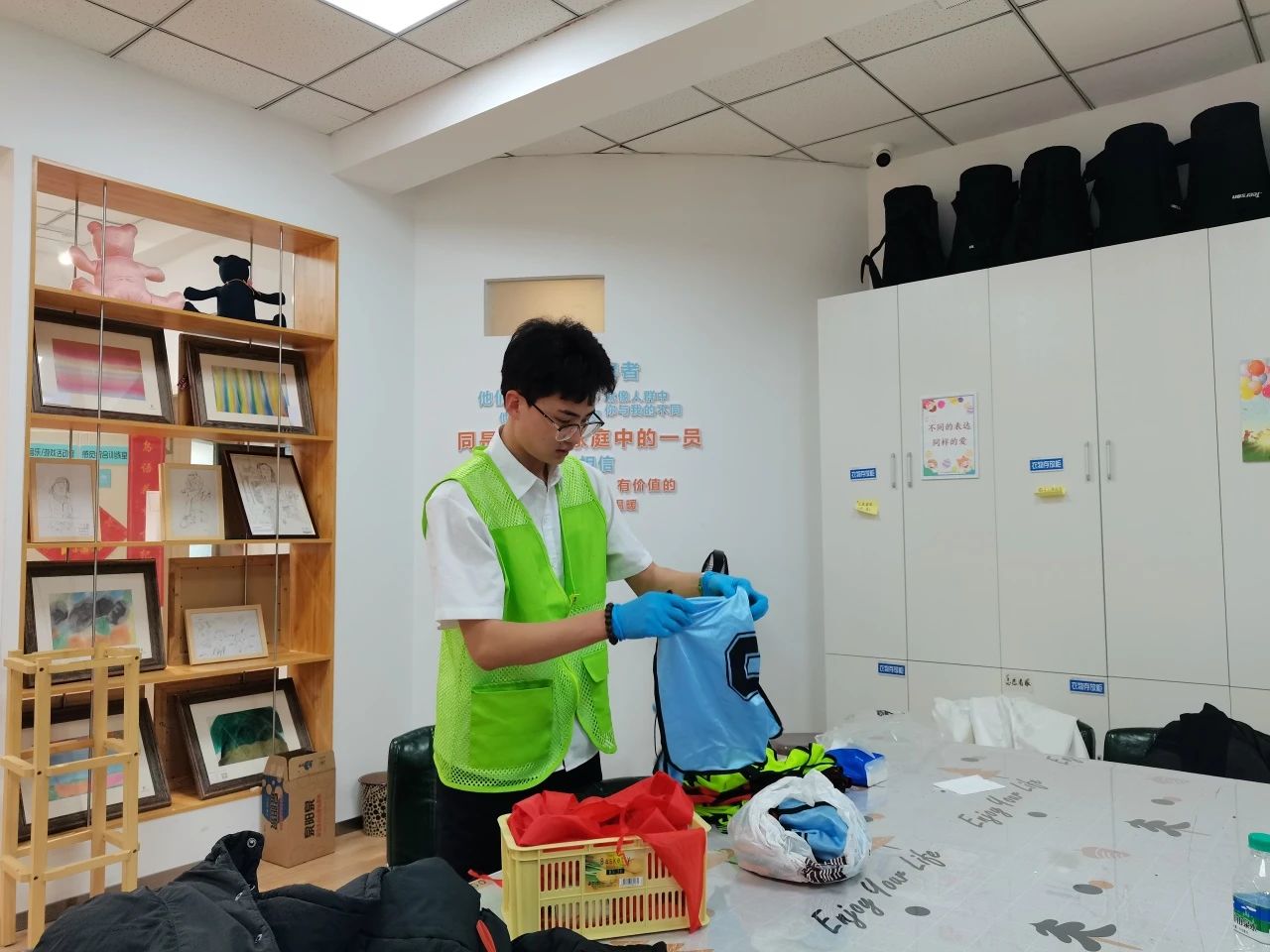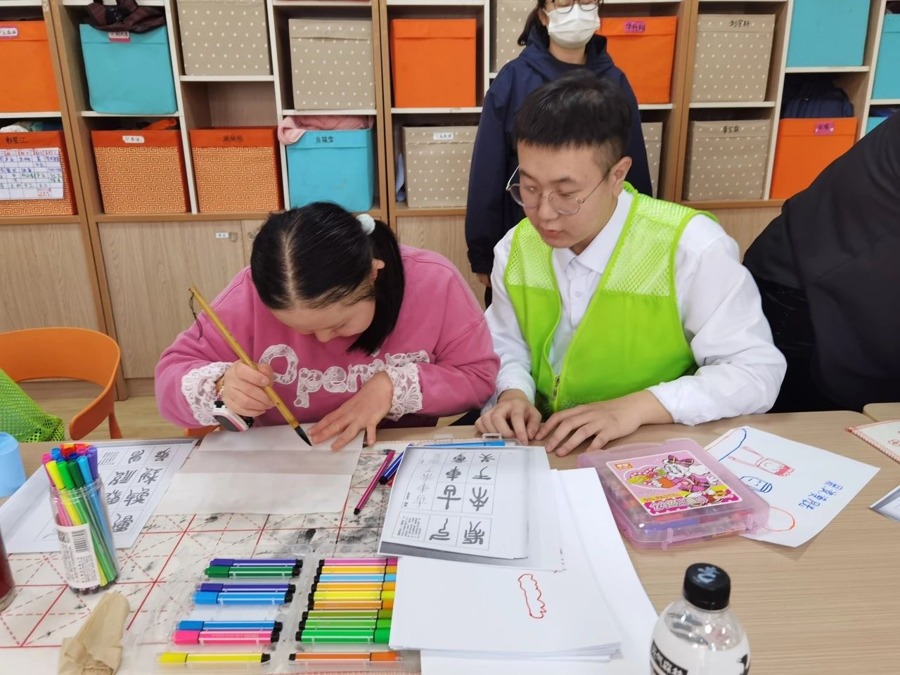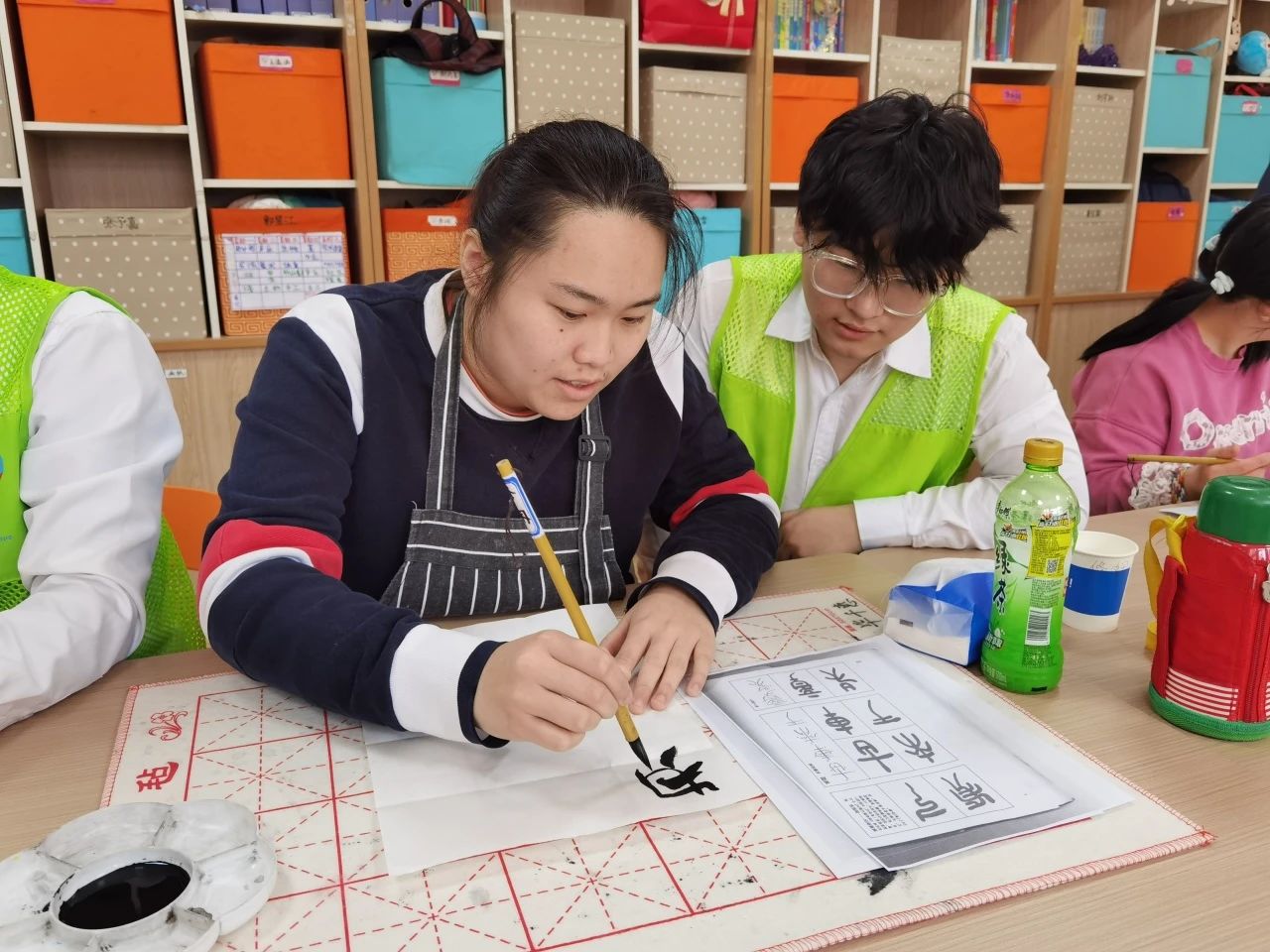 2023年6月以来,支部张玲玲教师一直为服务中心的星社孤独症儿童讲授书法课。为锻炼孩子们的专注力和控制力,在志愿者的带领下,孩子们能进行简单的笔画书写,并且学习了笔顺书写的方法。上学期积累的笔画书写的复习,以及本学期笔顺的书写训练,让孩子们找回书写的成就感。孩子们课上积极配合,专注力提升,能进行有效的课堂互动。与此同时,由于服务中心的仓库整理搬迁,需要志愿者进行帮助整理归纳。四名入党积极分子同学,按照中心的要求进行合理的物品清理和仓库整改。同学们不怕苦不怕累,发扬志愿精神,投入到劳动服务中。