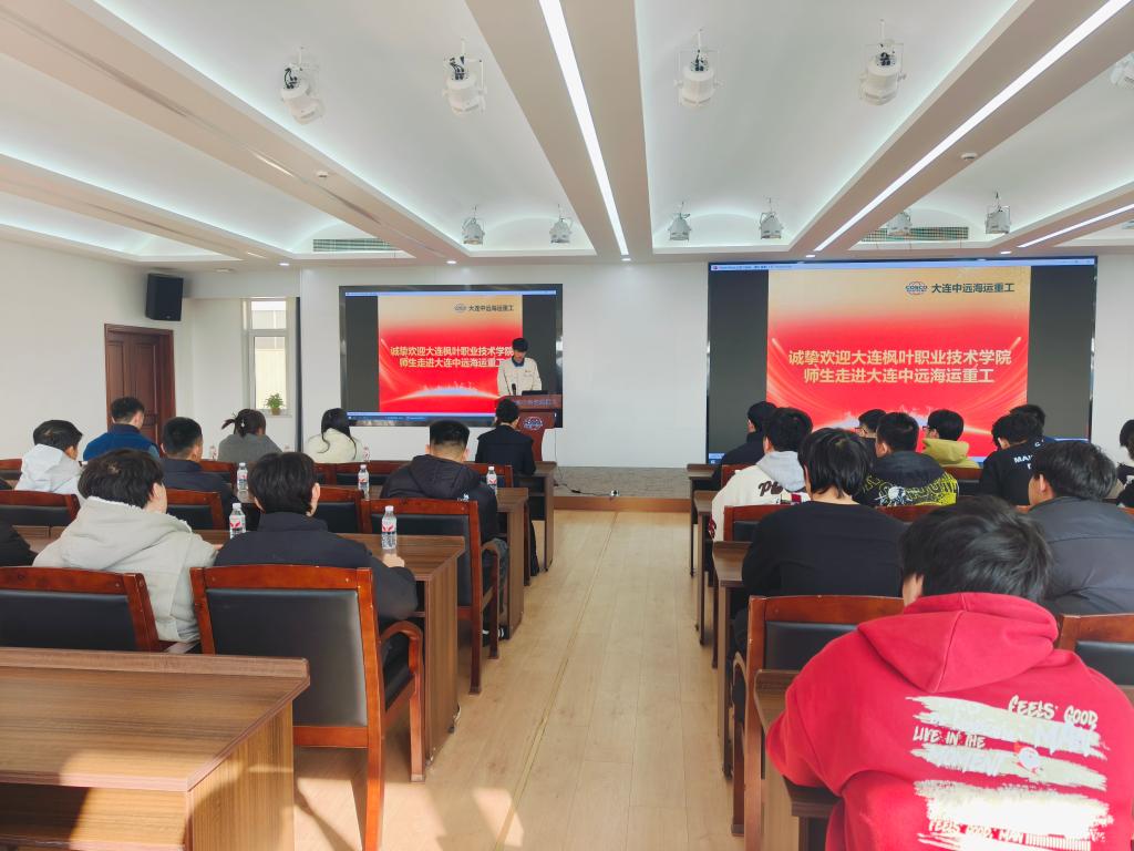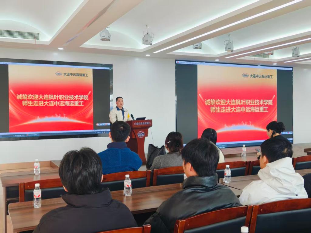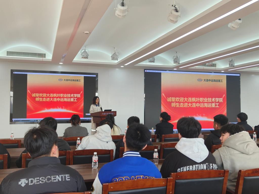 学院师生抵达厂区指定入口后,在中远人力资源部科员王启梅的引导下前往新经营楼会议中心5楼会议室集合。随后王启梅介绍了本次研学的流程与目的,明确“观察、学习、交流”的核心方向;紧接着播放的企业宣传片,生动呈现了中远的发展历程、核心业务、企业文化及行业地位,让师生对企业有了直观认知。之后人力资源部科员李明彦从多年经营积淀、厂区资源分布到人员架构,全方位解析企业运营逻辑,为师生搭建起“行业生态—企业创新—个人成长”的认知框架。
