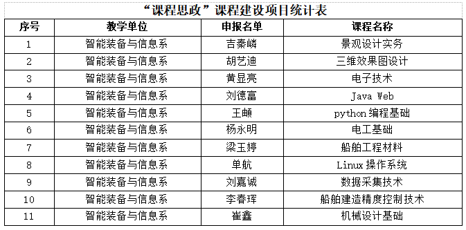 为深入贯彻《高校思想政治工作质量提升工程实施纲要》《高等学院课程思政建设指导纲要》等文件精神,我积极响应,全面推进2026年度“课程思政”建设项目立项申报工作,共11位教师申报