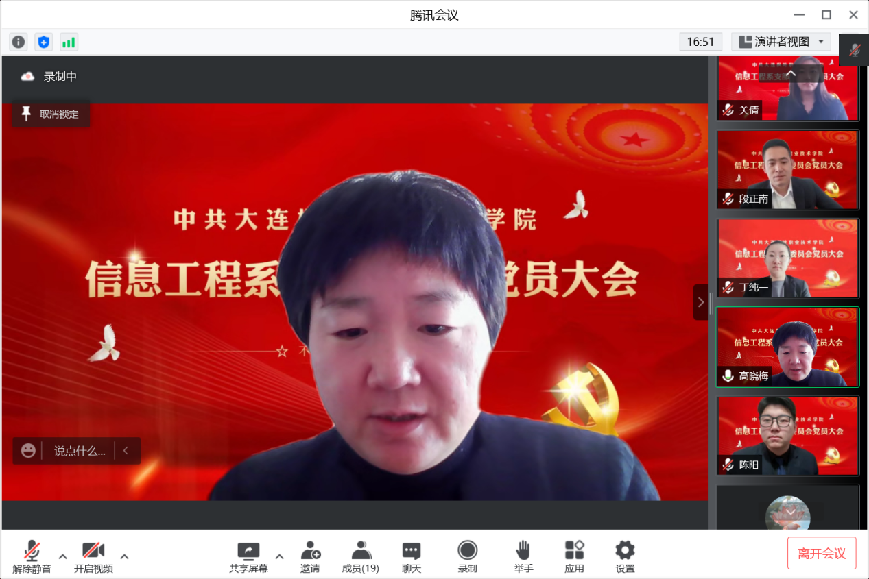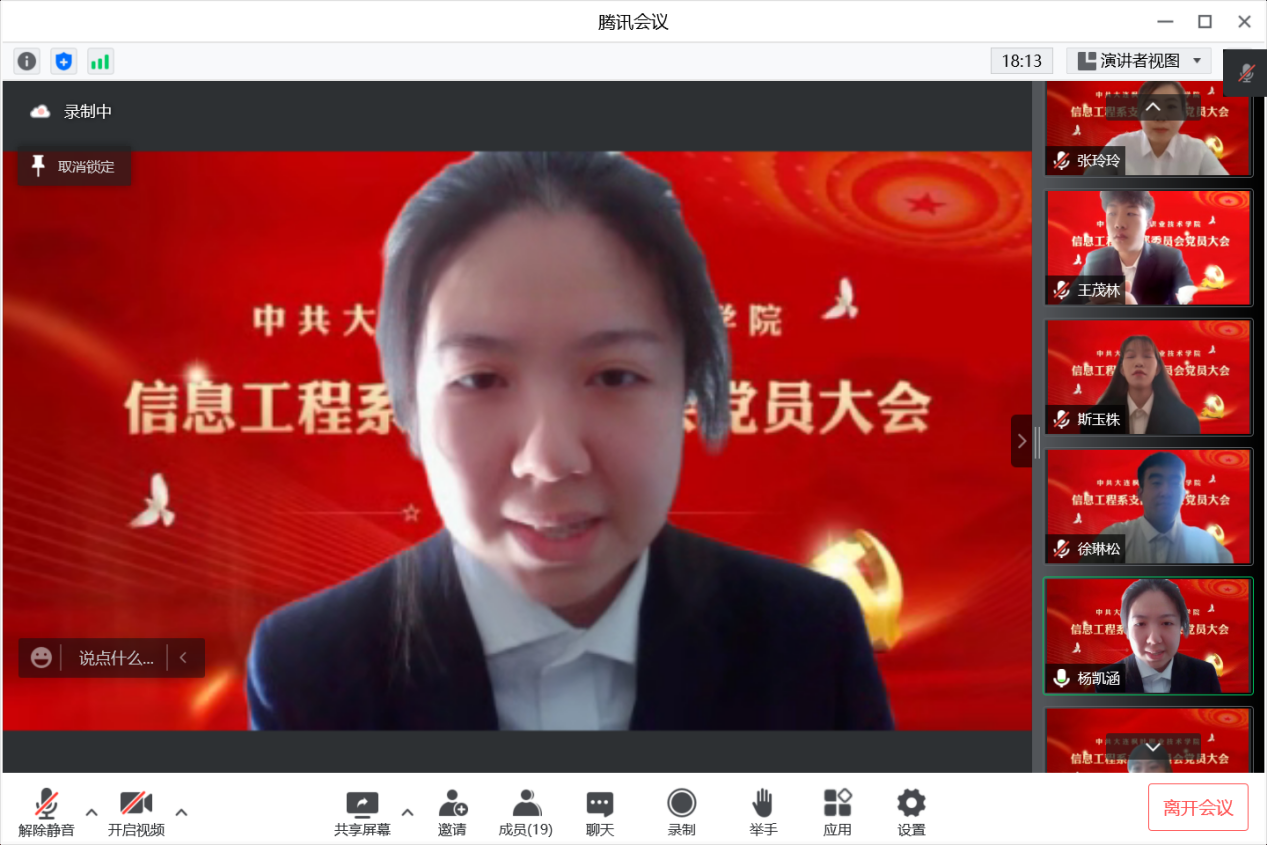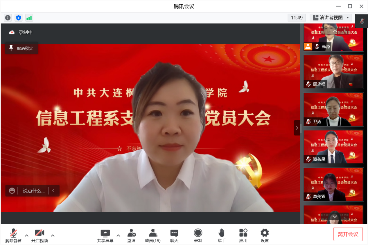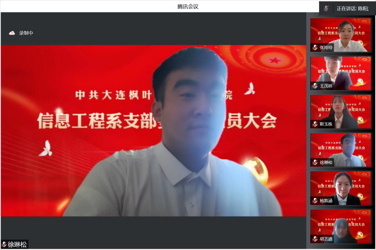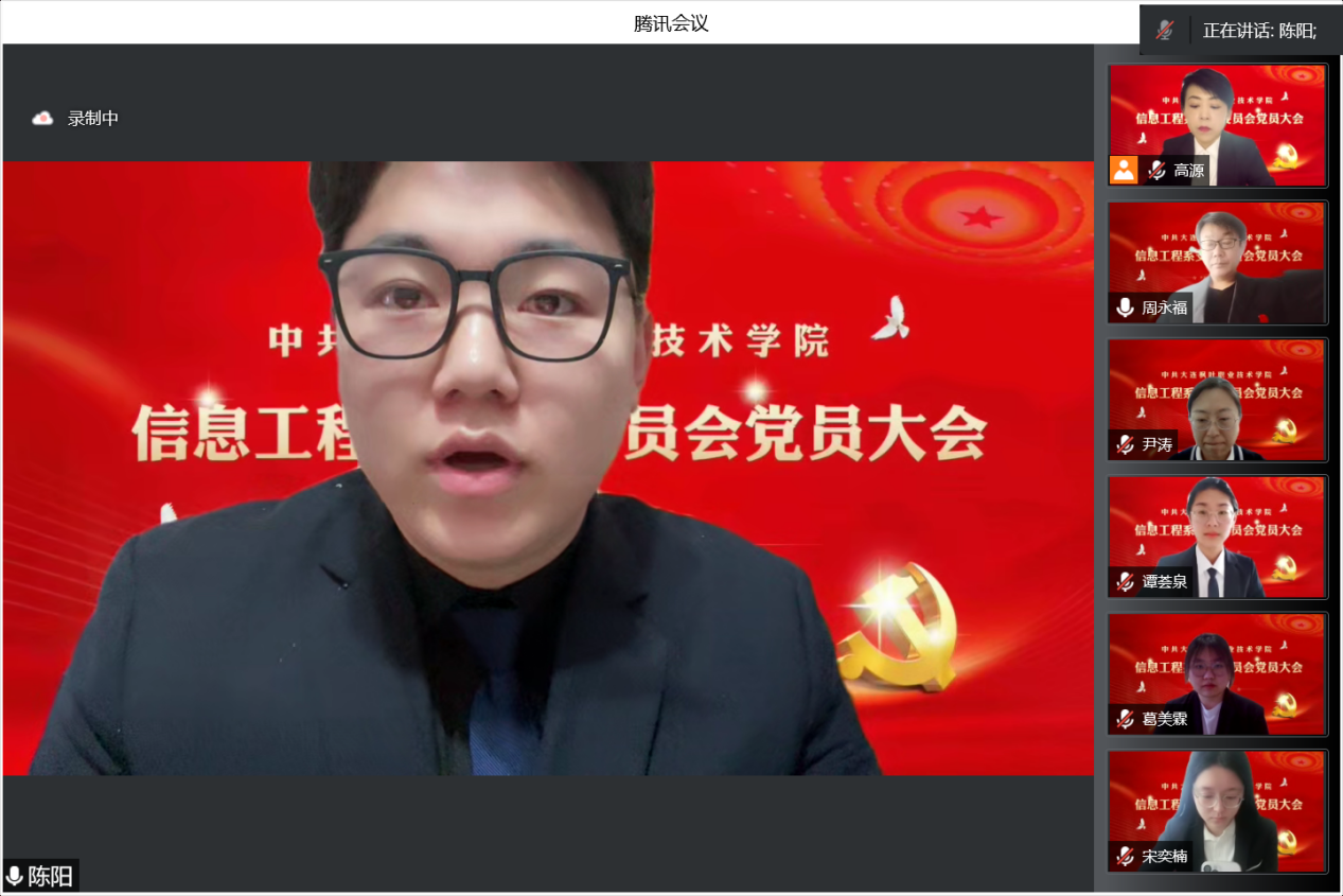 为进一步规范发展党员工作,保证新发展党员的质量,依据《中国共产党章程》有关规定,2022年12月24日上午,信息工程系党支部召开2022年下半年党员发展大会。受疫情因素影响,本次会议在线上召开,信息工程党支部正式党员、预备党员以及拟发展对象参加了此次会议。