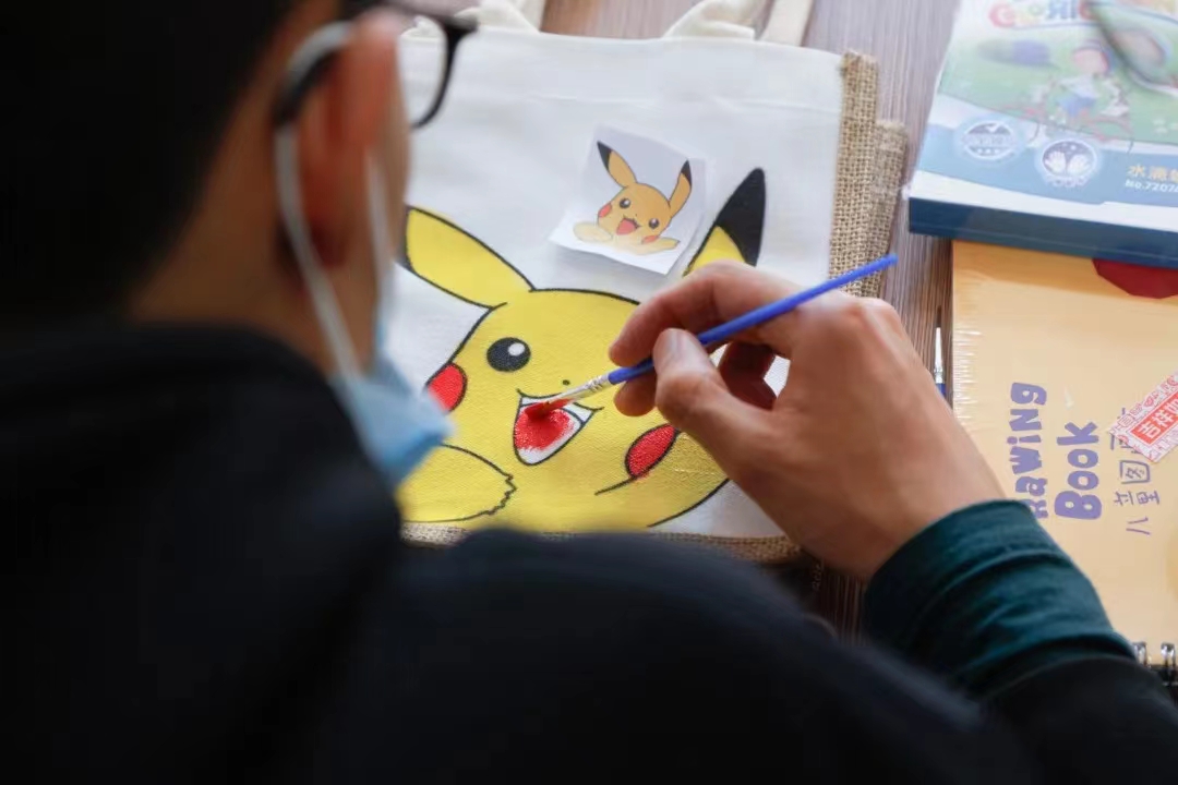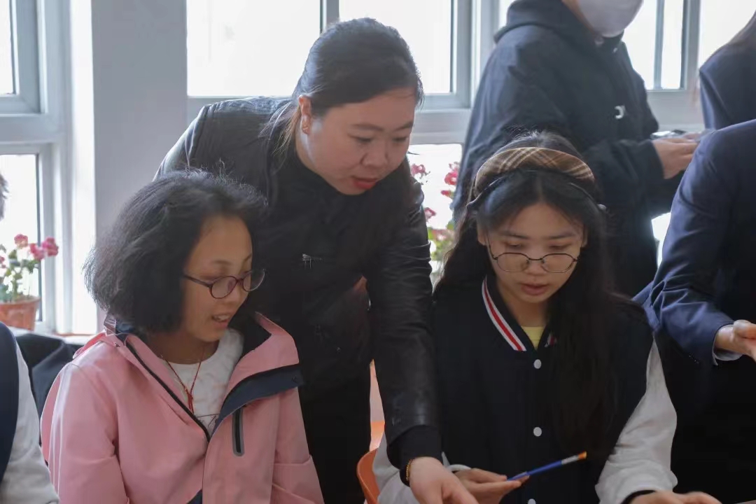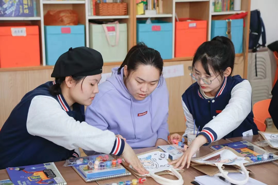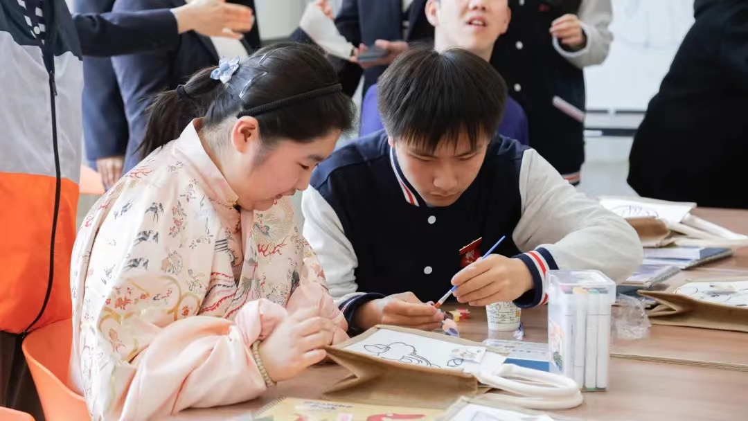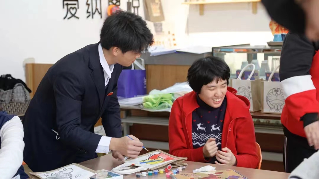 党员教师、积极分子学生与孤独症儿童一起绘画