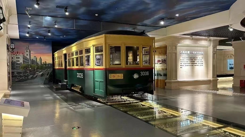 首先走进“回顾城市历史,感悟大连文脉”为主题的第一层展区,映入眼帘的是各个历史朝代与大连的行政归属。最先映入眼帘的荣誉墙,彰显了大连这座城市的灿烂与辉煌,老照片、日俄建筑,连接着大连的过去和现在。通过观看以历史脉络为主线的短视频,我们对大连城市建设的发展历程有了清晰的认知,追溯到这座年轻的城市背后那源远流长的历史画卷。同时让人兴奋和惊喜的是有轨电车,它是大连的城市命脉、文化符号,一直伴随着城市的建设与发展,连接着大连的过去与现在,也是很多人儿时的回忆,承载着一段可回首的青春岁月和记忆华章。