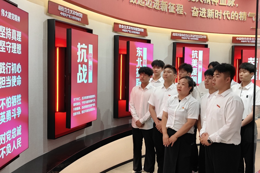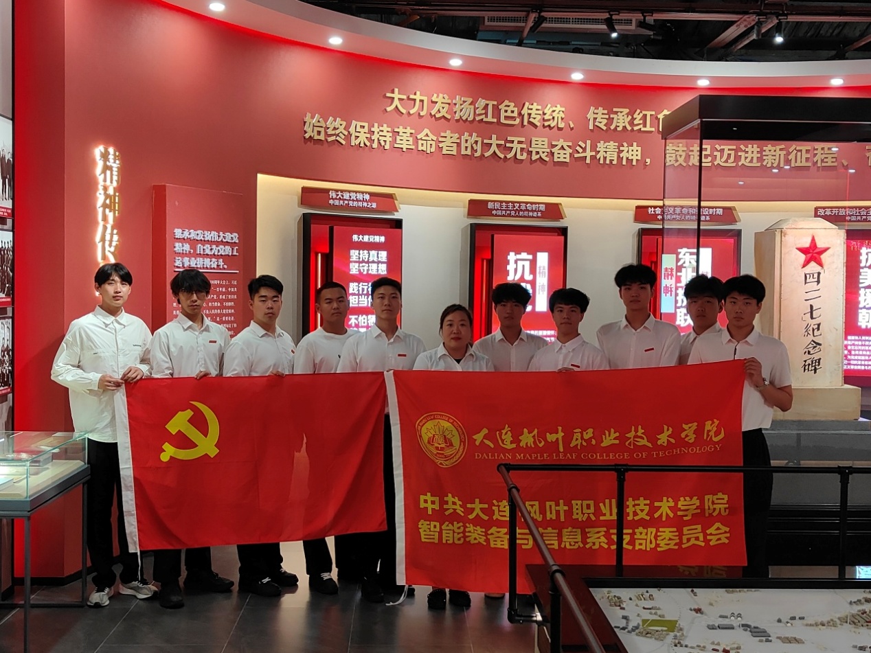 在七一党的生日即将到来之际,大连枫叶职业技术学院智能装备与信息系党支部党员教师张玲玲带领2024级入党积极分子同学们怀着崇敬之情走进四二七大罢工陈列室。